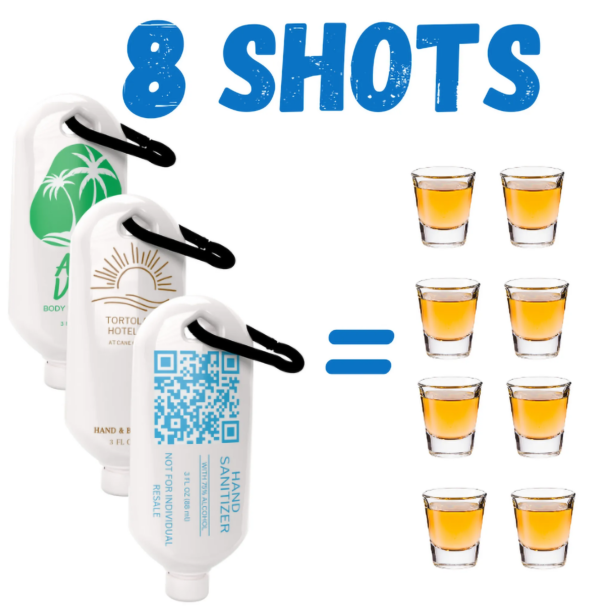 Small enough to fit in a quart-sized bag with your toiletries, these flasks are perfect for flights, cruises, concerts, and day trips. The discreet labels make them look like everyday lotion or sanitizer bottles, so they blend in with your travel kit.