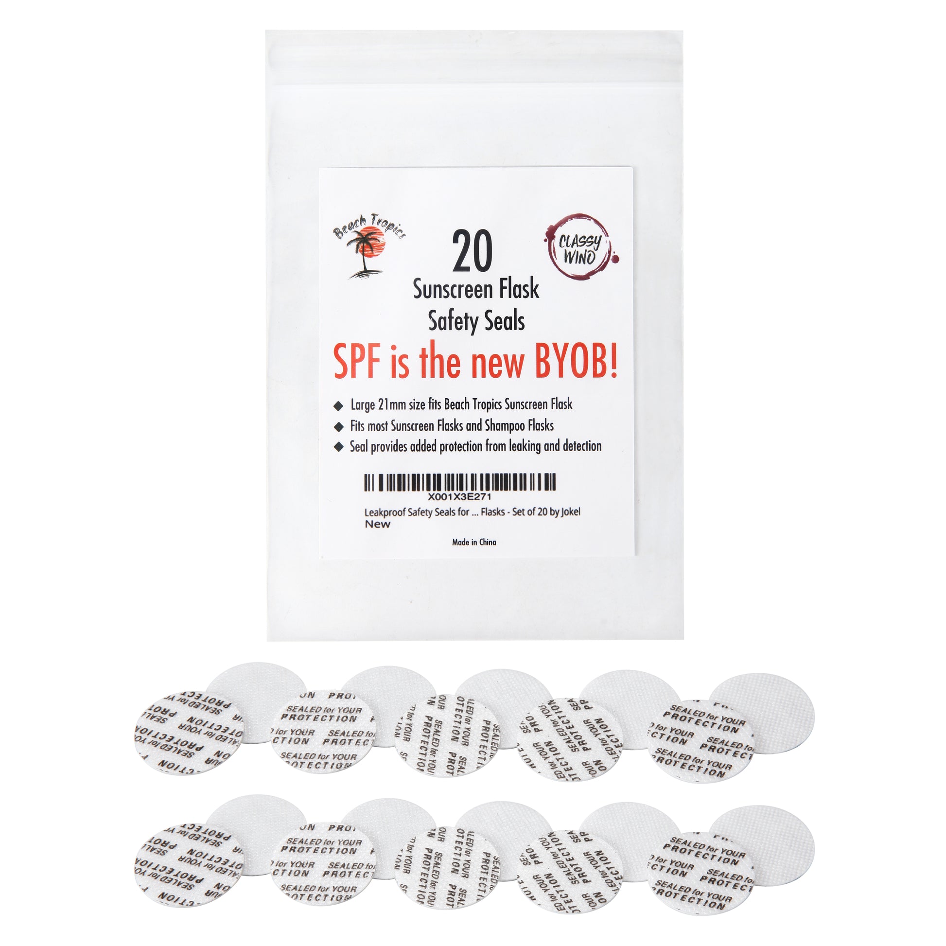 KEEP YOUR BOOZE IN THE FLASK - adhesive seals for bottles ensure your favorite beverage will not leak from the sunscreen flask.